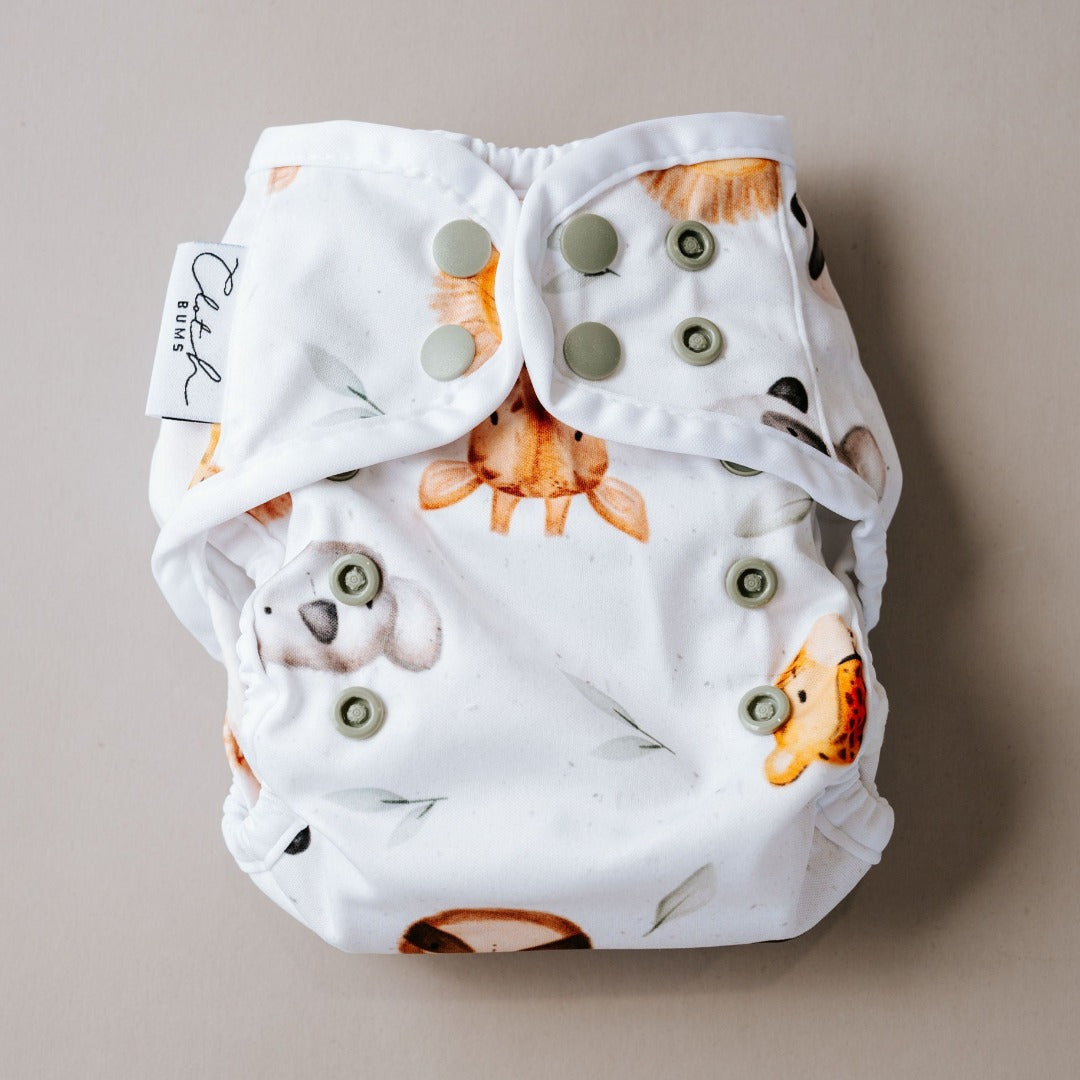 Meet our FAIRY newborn cover which also doubles as a super convenient newborn nappy. The insert snaps into the back of the nappy under the PUL flap and is easily interchangeable to use over and over with a new insert.